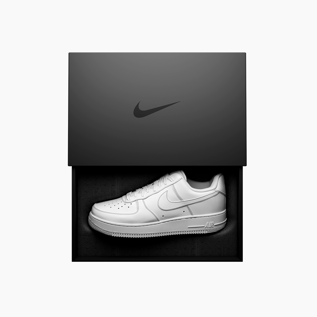 This artwork features a Nike Air Force sneaker magically floating and resting among uneven rocks, capturing a surreal balance between modern design and natural ruggedness. The piece highlights the essence of lightness and power, with the sneaker gliding gracefully between rough edges, creating a striking contrast of textures. It symbolizes the harmony between innovation and nature, offering a visual metaphor of resilience and adaptability.