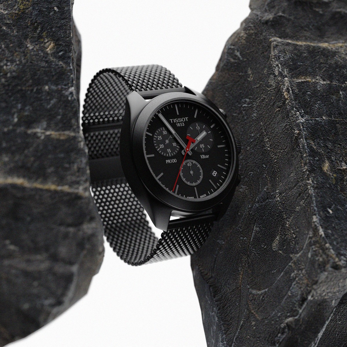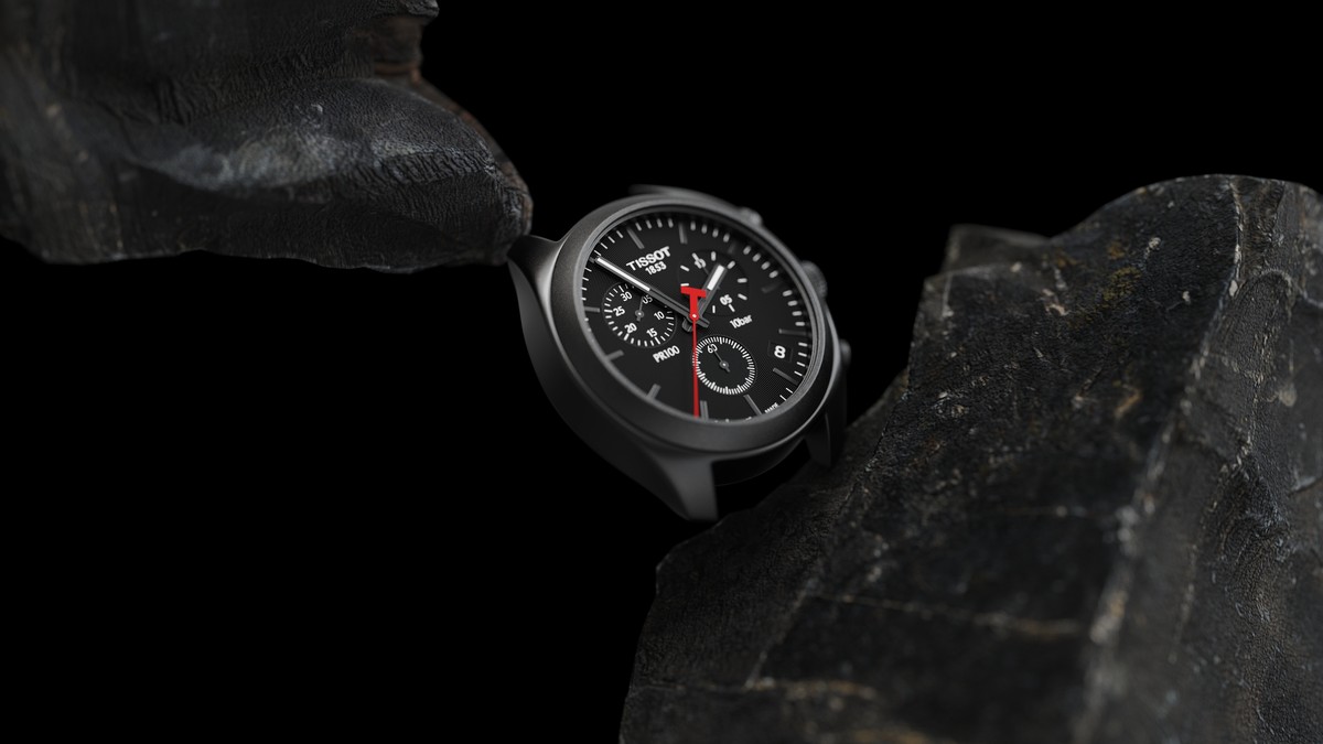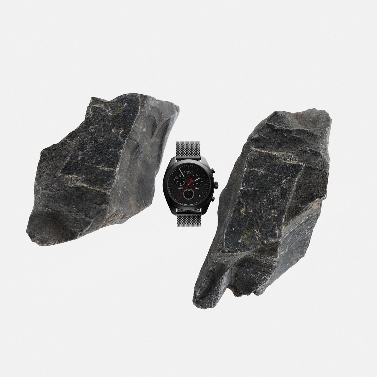 Comparing the perfect finishing of the watch compared to the sharp edges of the rocks. The effect of the distance of the stones is intended to show a movement that orbits over the watch, always reserving the protagonism to the product.