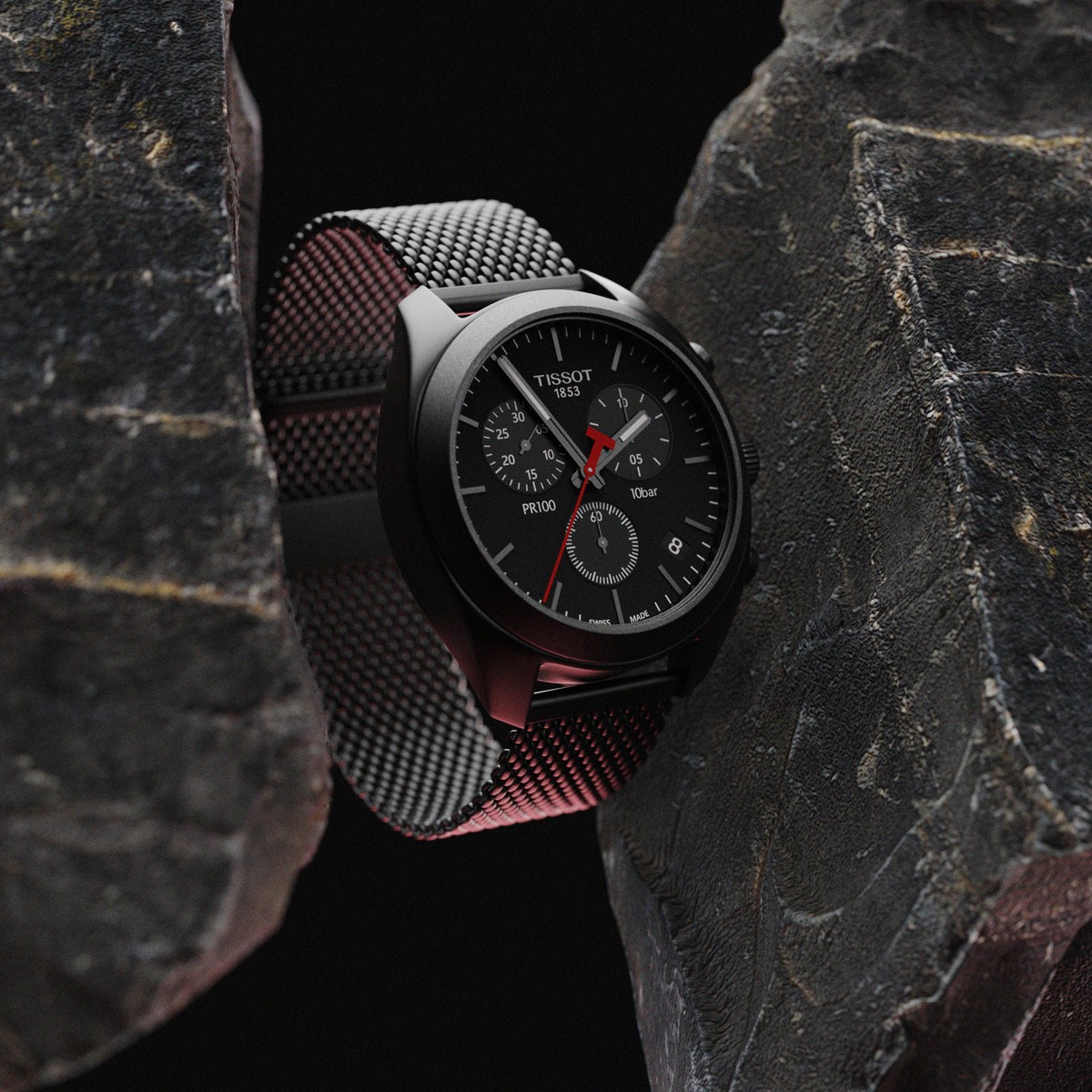 The main idea wants to show the perfect finishes of the watch compared to the irregularities in rocks. It intends to give a focus, showing a red light on the watch as well as the hands typical of the watch brand.